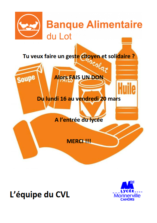 Faites un don du 16 au 20 mars à l'entrée du lycée