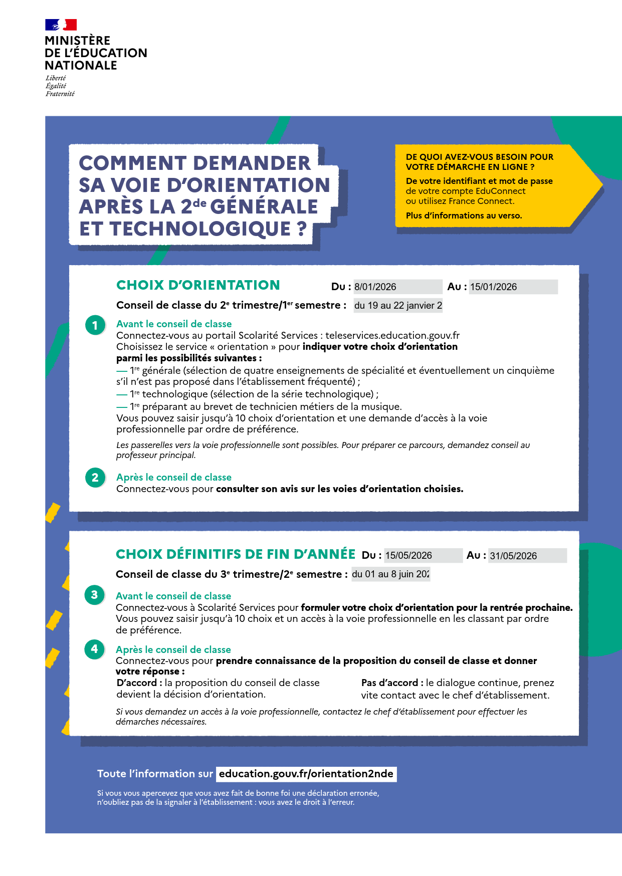 La saisie des voeux d'orientation provisoires, puis définitifs après la 2nde Générale et Technologique