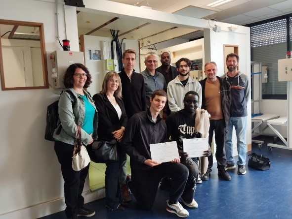 Dans le cadre de ERASMUS +, l’équipe éducative du lycée Gaston Monnerville a reçu ce mois-ci, deux lycéens et deux professeurs du lycée BELLUZZI-FIORAVANTI de Bologne, pour leur faire découvrir le lycée et une entreprise cadurcienne de leur secteur de formation. L’entreprise MAEC a accueilli Talla et Ion pour un stage d’un mois en électricité et en maintenance industrielle. Ce fut l’occasion, d’échanger en anglais, en italien et de constater une rapide intégration des stagiaires dans l’entreprise. Ils ont aussi visité les plateaux techniques en maintenance industrielle, en électricité du lycée avec les 3 tuteurs de la MAEC : monsieur DURAND Cyril (responsable du service maintenance), monsieur ECK Thomas (agent de maitrise maintenance) et monsieur VITAT Hugo (électricien du bâtiment). Pour cette année encore, cet échange a été réussi, grâce à une forte implication LYCEE -ENTREPRISE